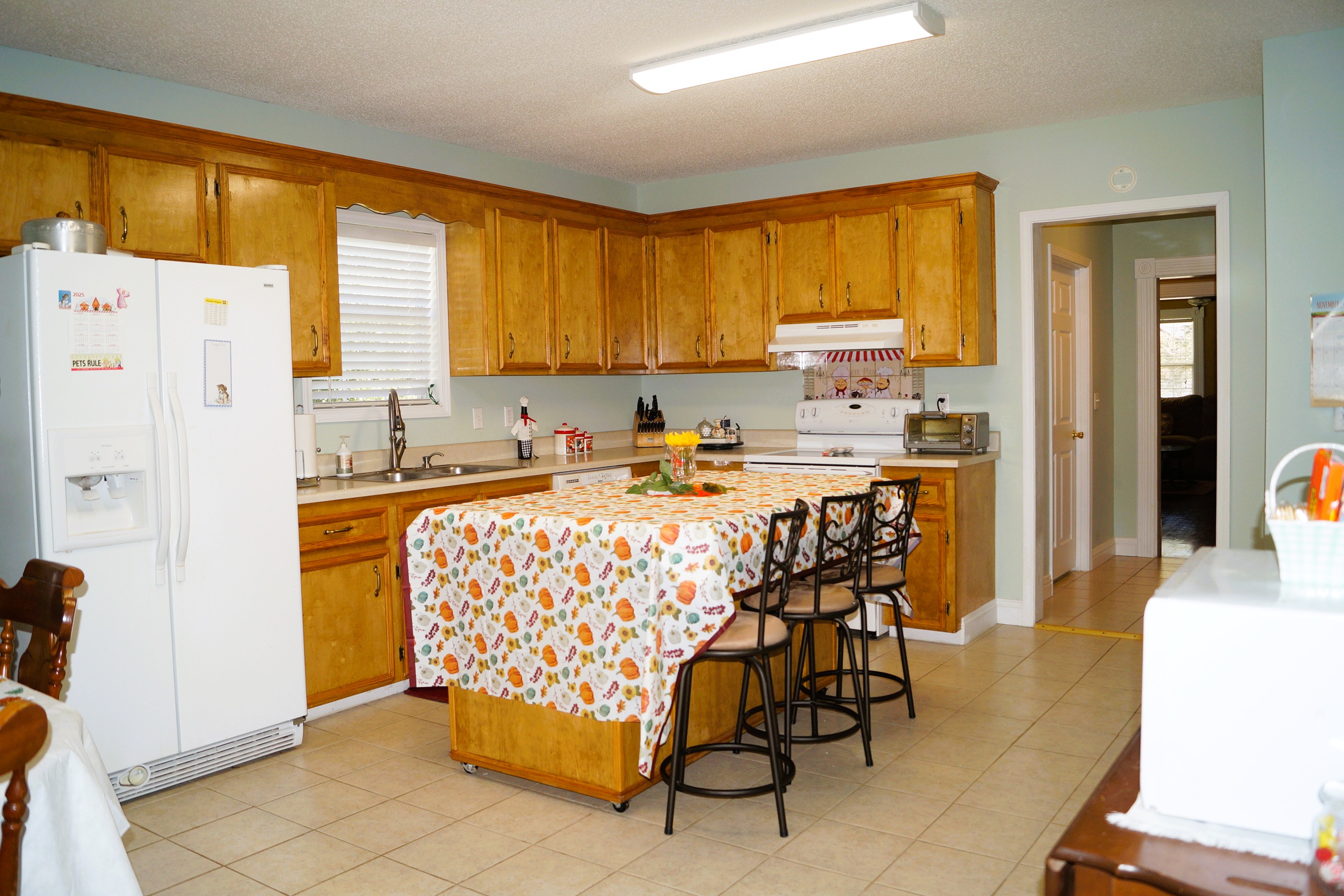This charming 2-bedroom, 2-bathroom home offers modern updates and an inviting, open layout. The spacious kitchen is a true standout, featuring an abundance of counter space, cabinets, and a large center island—perfect for meal prep and entertaining.