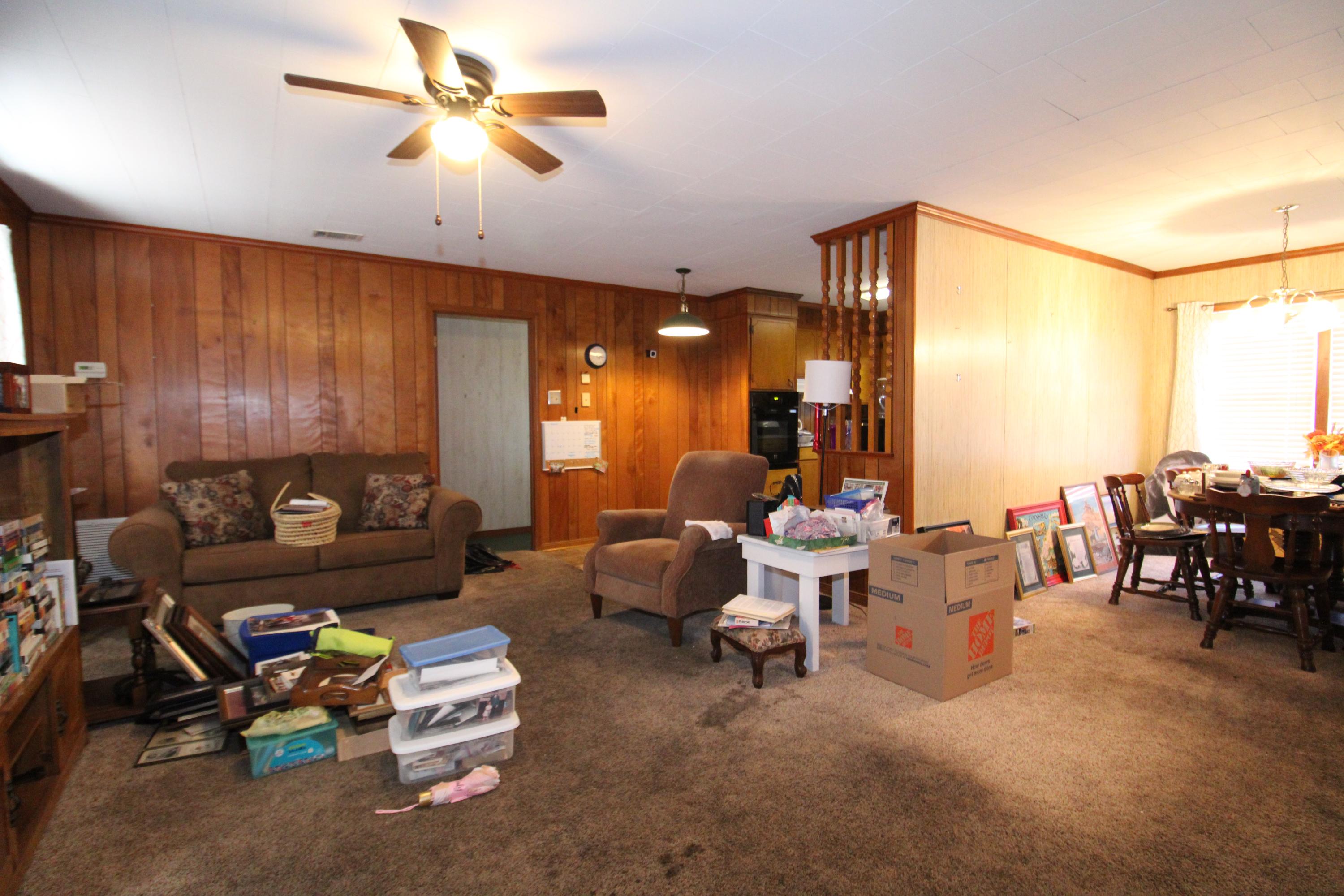 Carpet runs throughout most of the home, with durable flooring in the kitchen, dining area, and bathroom. Enjoy the lovely back porch, an attached outdoor storage room, and covered parking beneath the porch if desired. There is also a nice-sized patio located beside the covered porch and parking area.